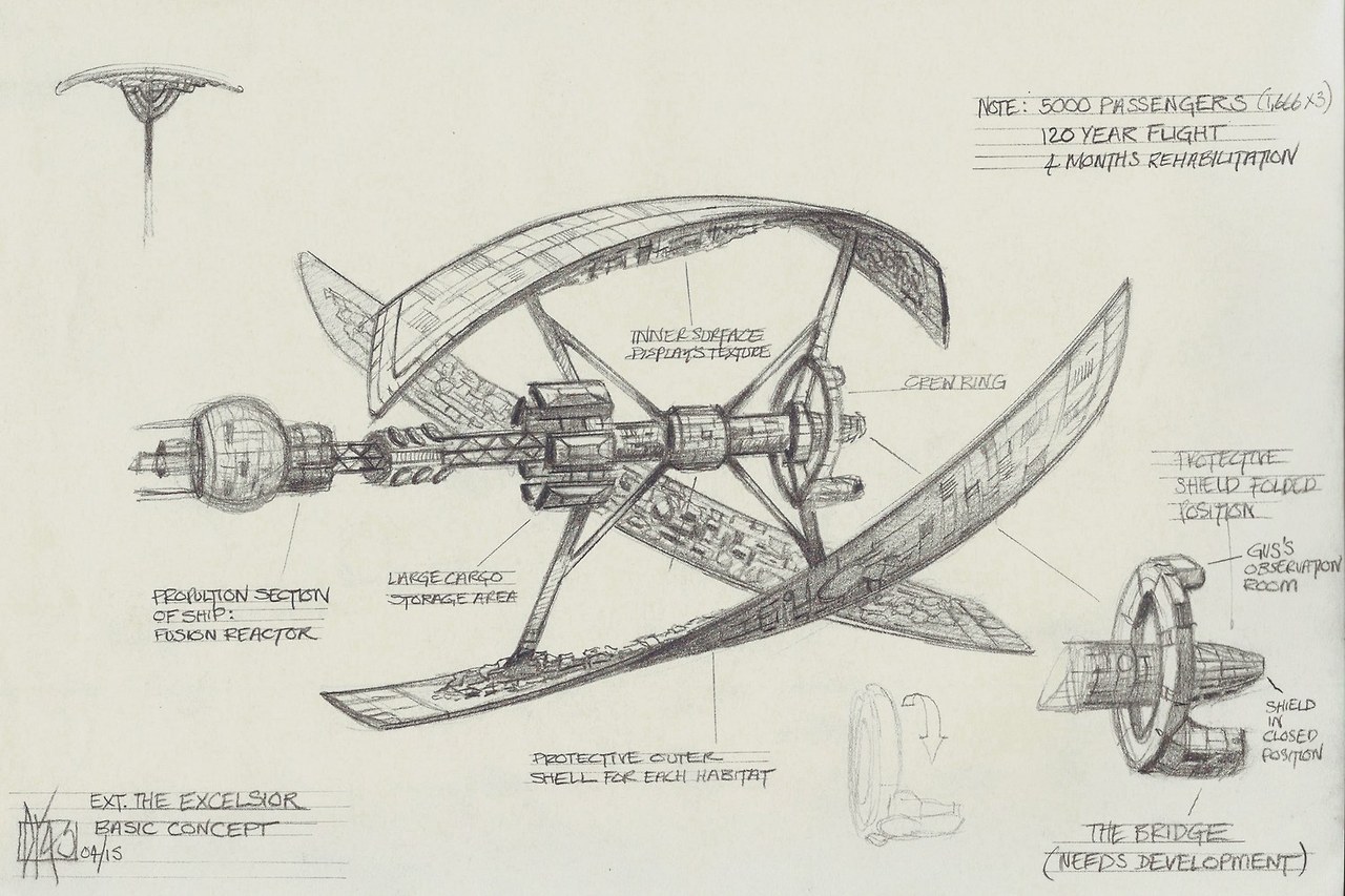 Tumblr / April 8, 2017 / movie, sketch, spacecraft Avalon spacecraft with anti-gravity rotation Passengers (2016)