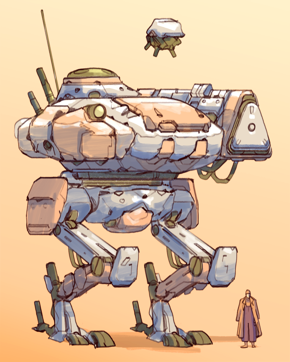 Tumblr / July 15, 2017 / illustration, mecha, robot poolsofchrome: Outerlands patrol Love the scale comparison! 😀